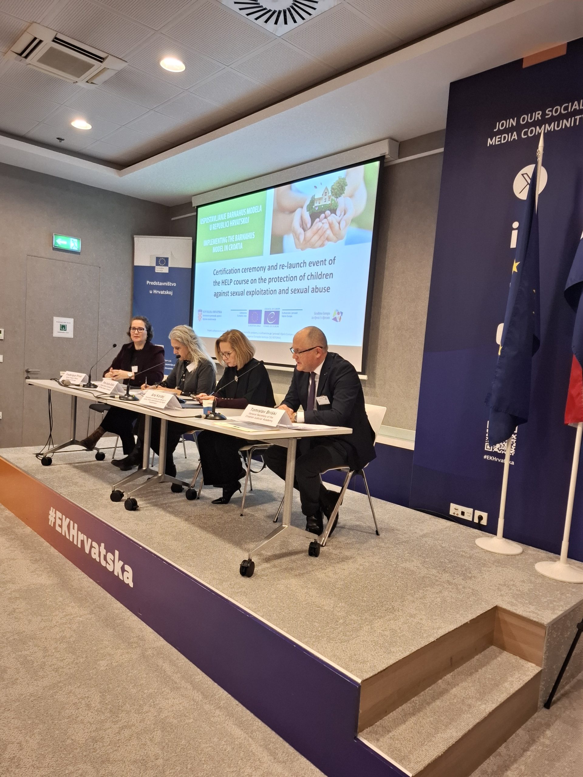 U Zagrebu je 4. veljače 2026. održana dodjela certifikata prvoj generaciji polaznika HELP e-tečaja o zaštiti djece od spolnog iskorištavanja i spolnog zlostavljanja te ponovno pokretanje ovog programa, razvijenog u okviru projekta „Implementacija Barnahus modela u Hrvatskoj“. Projekt zajednički provode Europska unija i Vijeće Europe u suradnji s Ministarstvom pravosuđa, uprave i digitalne transformacije i drugim relevantnim institucijama.
