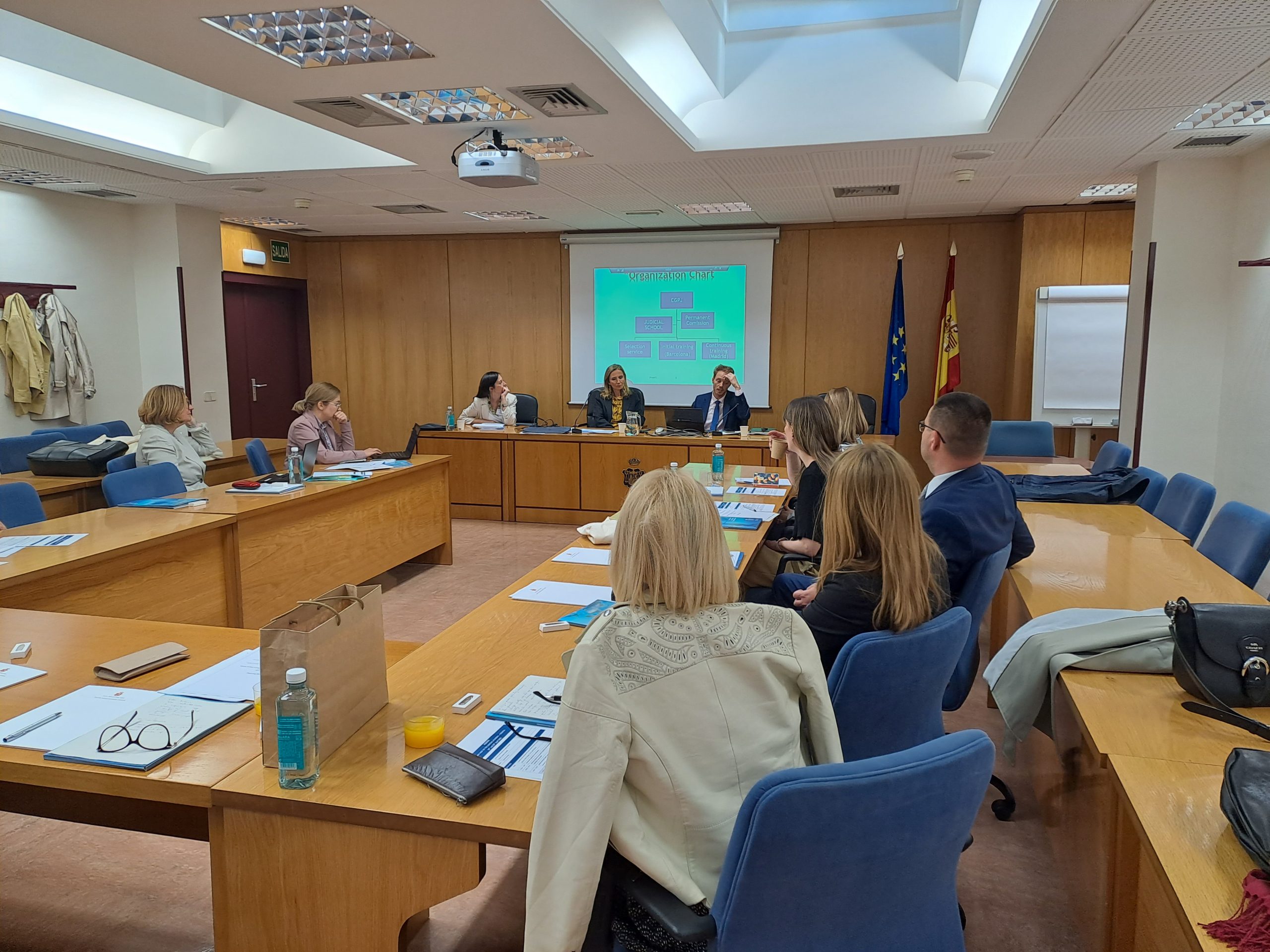 Predstavnici Pravosudne škole Španjolske predstavili su sustav stručnog usavršavanja u Španjolskoj te postupak odabira i imenovanja sudaca. Poseban naglasak tijekom posjeta bio je na korištenje digitalnih pomagala u planiranju godišnjeg programa Škole, odabiru polaznika i organizaciji hibridnog načina poučavanja. U okviru posjeta organiziran je i obilazak Vrhovnog suda Španjolske.