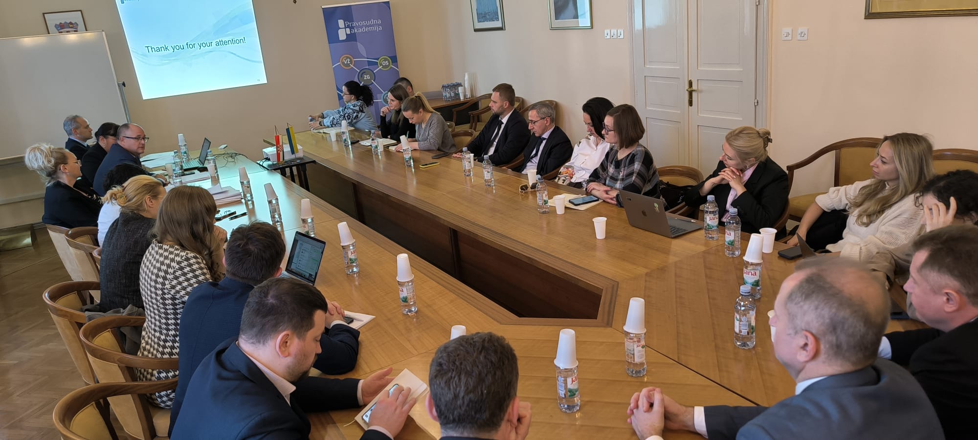 07.11.2025Dana 4. studenoga 2025. Pravosudna akademija ugostila je delegaciju iz Ukrajine koja boravi u studijskom posjetu RH organiziranom u okviru projekta PRAVO- Justice financiranog os strane EU a čiji je cilj jačanje pravne države, neovisnosti pravosuđa i reforme sustava pravosuđa u Ukrajini. Delegacija je brojila 20 članova, uključujući predstavnike ukrajinskog Ministarstva pravosuđa, pravosudnih institucija te institucija nadležnih za stručnu obuku sudaca i državnih odvjetnika.